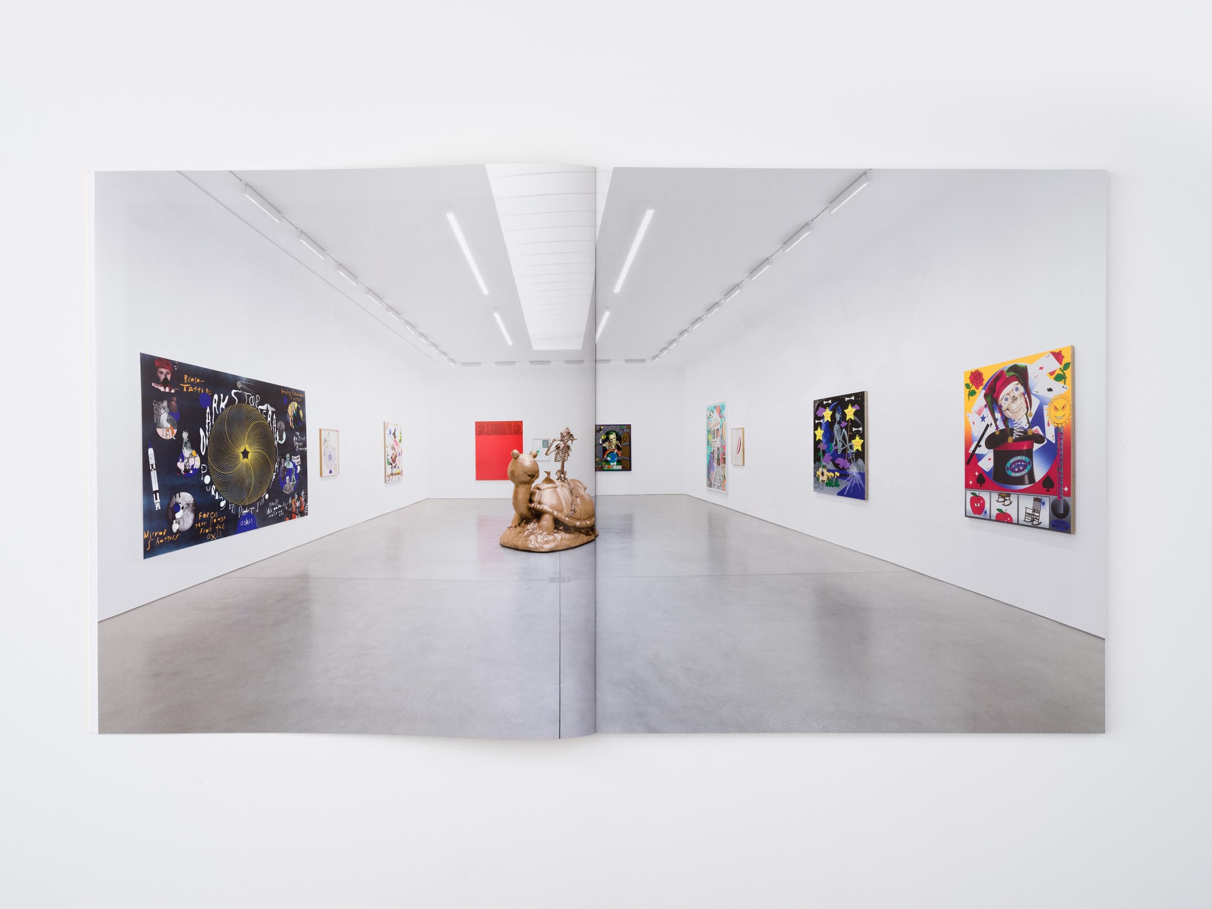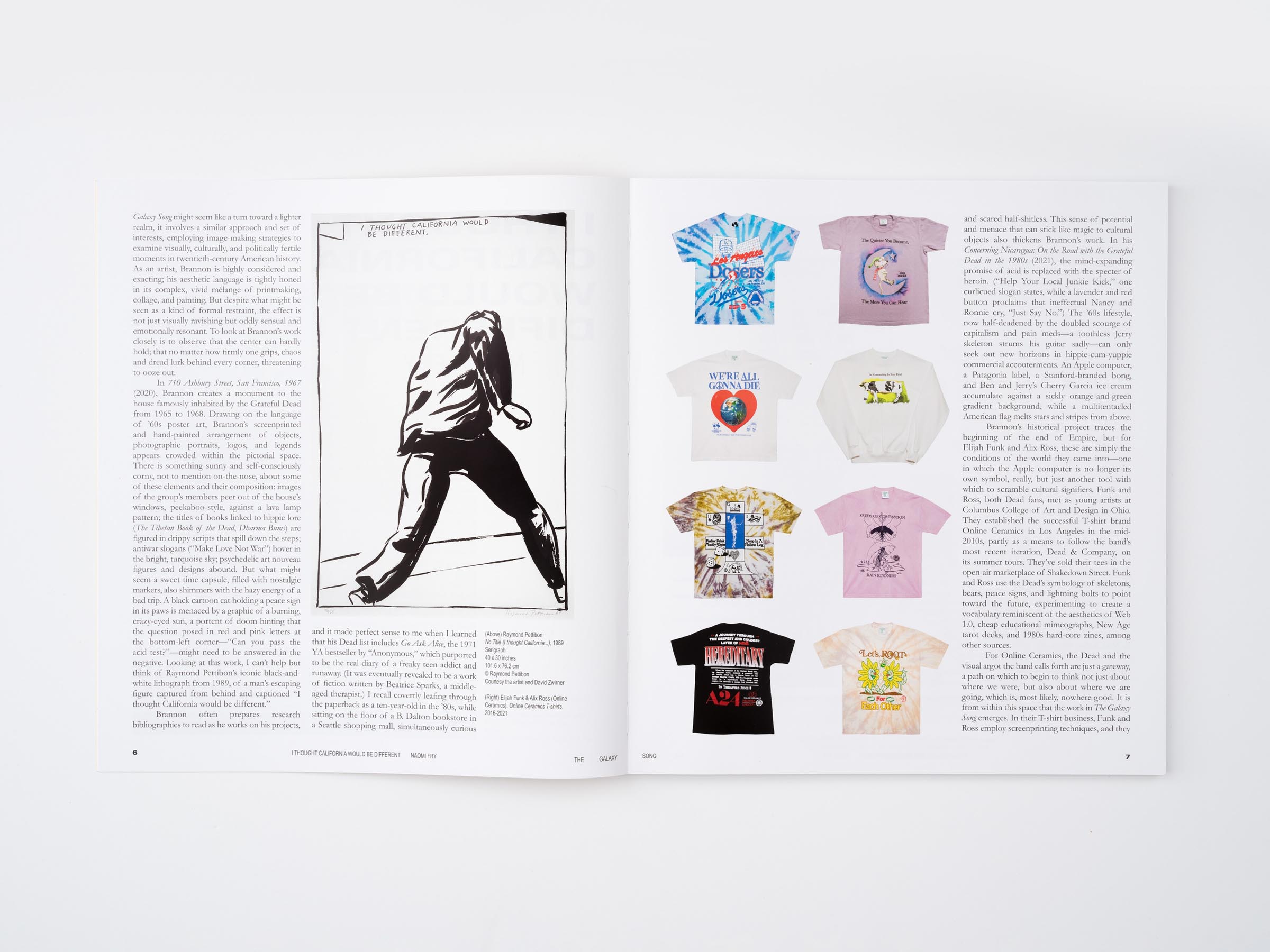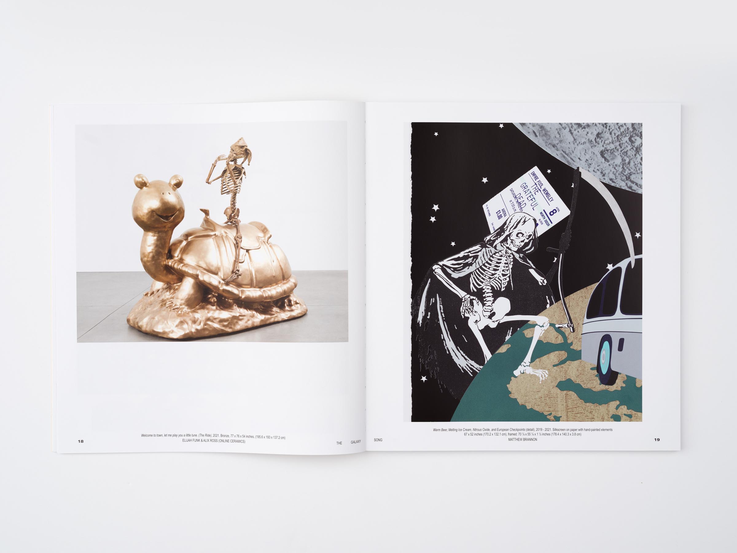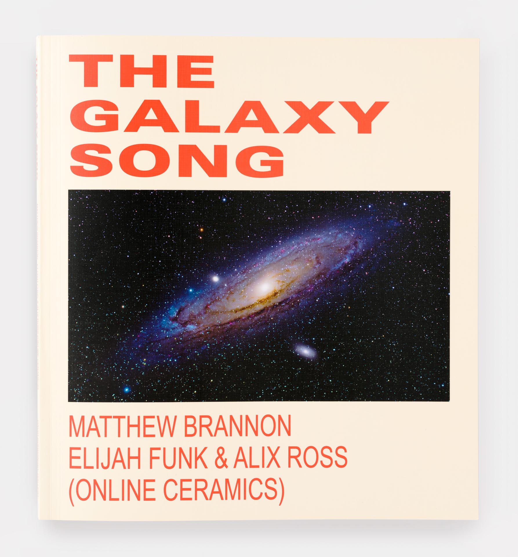 Exhibition catalogue design for The Galaxy Song, an exhibition featuring unique silkscreen prints and paintings by Matthew Brannon, and paintings and sculpture by artists and fashion designers Elijah Funk & Alix Ross (Online Ceramics), who have become widely recognized for their t-shirt designs, among other projects