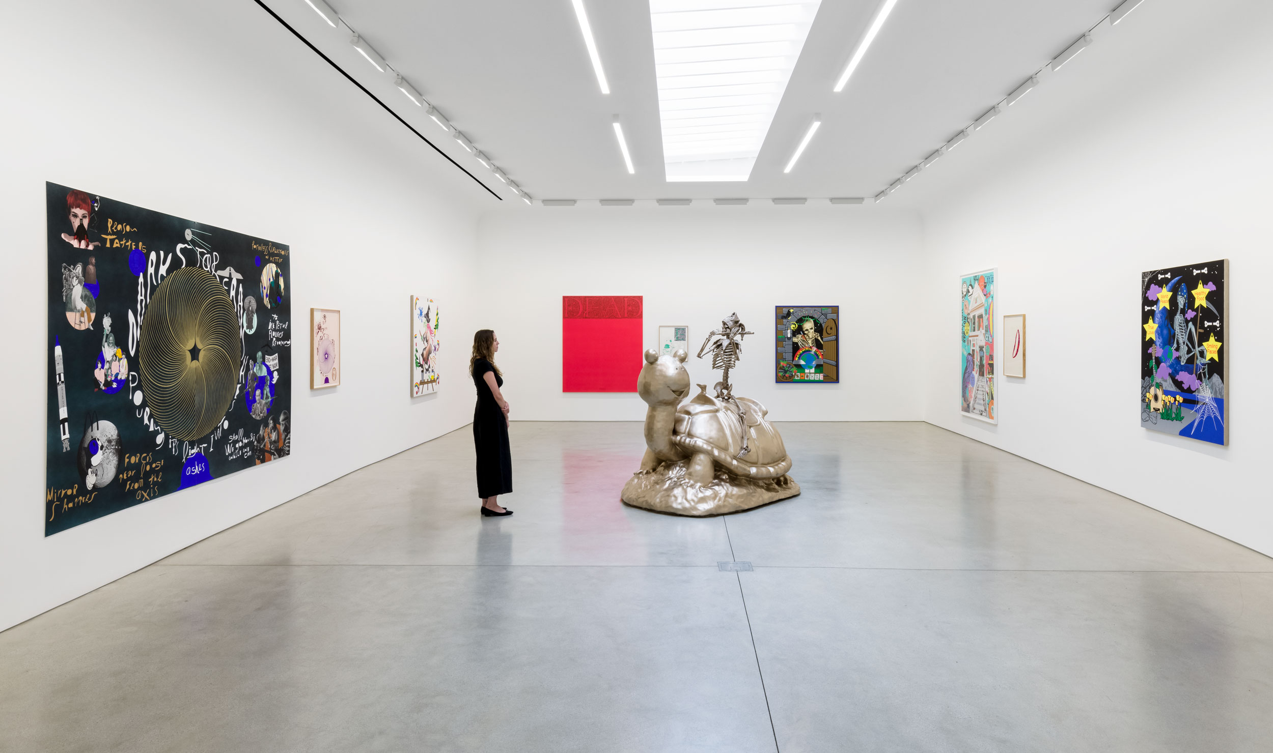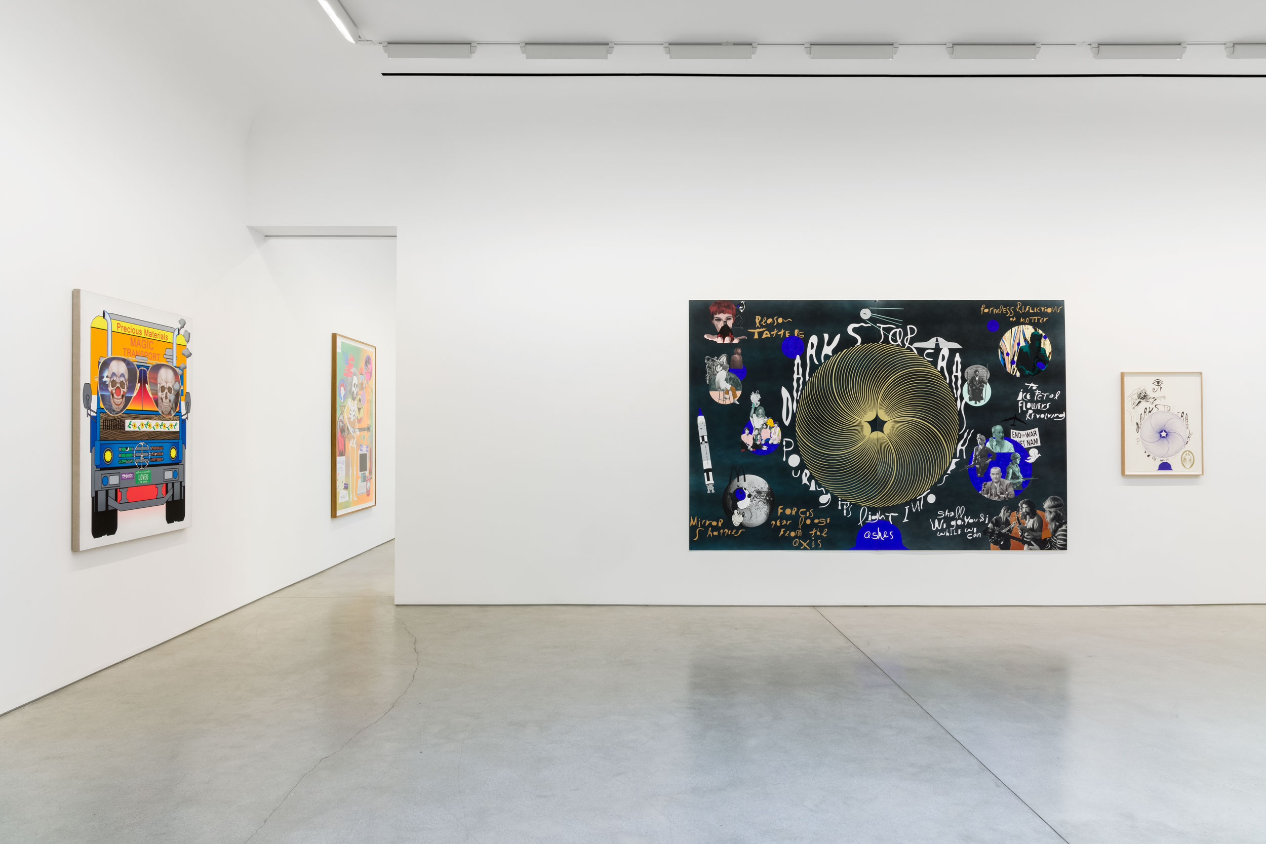 For both Brannon and Funk & Ross, The Galaxy Song is an occasion to treat the motifs, cosmic mindfulness, and countercultural narratives associated with the Grateful Dead as springboards for open experimentation. While the 1960s-era, psychedelic origins of the Dead—as well as the band's propensity for inspiring its fans to reinterpret its densely interwoven iconographies—provide the show's major conceptual through lines, it is just as much a celebration of the possibilities inherent to the screenprinting process as an improvisatory dive into the dark, weird, humorous spaces in America's past, present, and future.